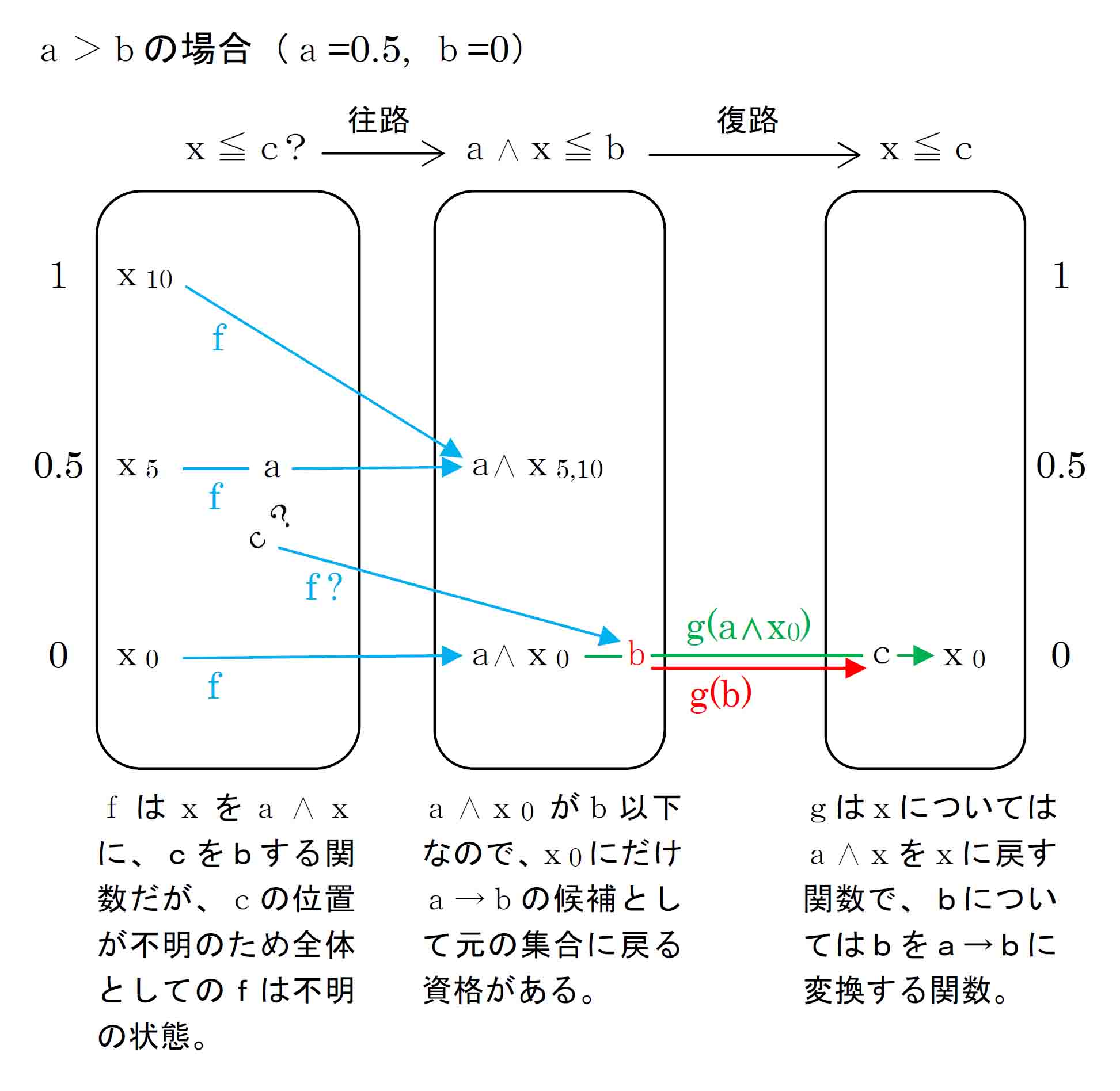 つまり、ある論理式をⅠ型証明表とハイティング代数3値モデルが定理として表示する事態とは、古典論理に例えれば「真理表4行の一部の行しか見ることができない状況」だと理解するのが正しいということである。
